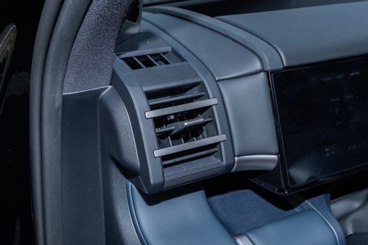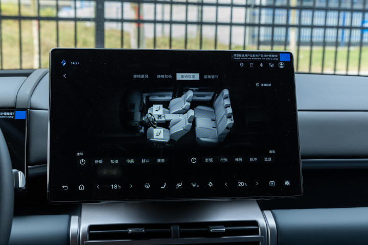 整个乘员舱的有效车长超过3米3,我在前排调好坐姿后,后排膝部空间超过两拳,轻松能翘二郎腿。190cm 的人坐进去,头部还有一拳多距离,完全不会顶头;难得的是地板几乎全平,中间坐人不用劈叉,三个成年人并排坐也不挤。小朋友在后排能轻松站起来走动,甚至能半站立着从后备厢拿东西,全家出行时特别方便。后排配有独立的空调控制面板,能自己调温度和风量,不用麻烦前排司机。