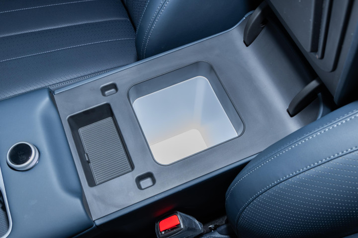全车一共有 47 处储物格,简直是收纳狂魔的福音。前排座椅背后有网兜,能放杂志、儿童绘本;后排扶手有隐藏式杯架,放饮料不会倒;门板上还有专门放雨伞的地方,带排水孔,湿伞放进去不会弄湿内饰。这些小细节能看出设计师是真的懂家庭用户的需求。