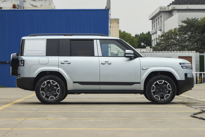 钛7的设计语言官方叫 "星际方舟",说人话就是:看起来像未来科幻片里开出来的硬派越野车。正面抓眼球的就是那对 "钛能大灯",双 L 形的 LED 日行灯带搭配方正的头灯组,活像机械战警的眼睛,晚上点亮后辨识度特别高。中网用了封闭式设计,毕竟是新能源车型,不过设计师通过 "H 型" 面板的立体雕刻,硬是做出了很强的力量感,不会显得单调;下方保险杠的银色护板是个实用配置,走烂路时能防刮蹭,视觉上也增加了层次感,整体看起来方正又大气。